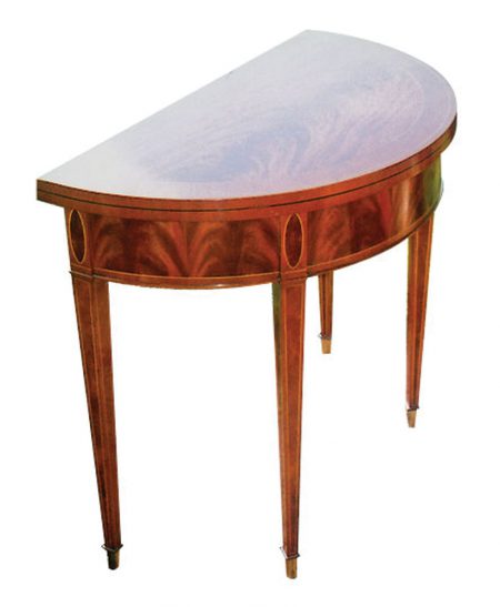 Demi Lune made from solid mahogany, curl mahogany veneer and boxwood stringings.