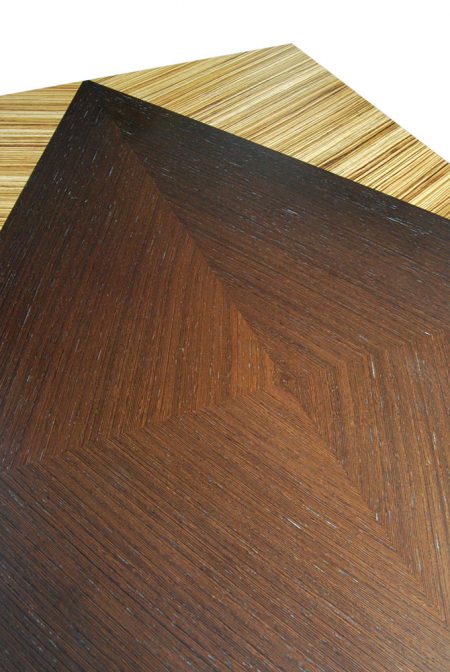 This coffee table, which could also be used as a TV stand, is constructed using a solid zebrano lipping and base. The decorative diamond inlay and base is crafted from wenge veneer. Price on application. Call Ray on 07837 397333